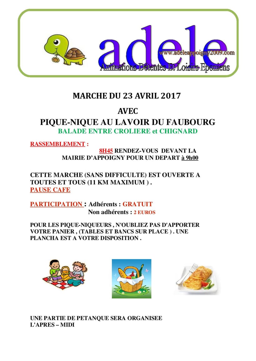 AVRIL 2016 Dimanche 10 Marche pique nic