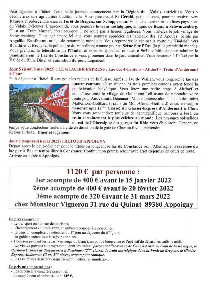 LES VOYAGES et Sorties 2022